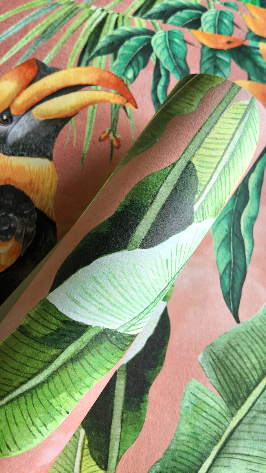 Exotic parrots and layered botanicals create a vibrant, painterly landscape, where rich clay tones and verdant greens are balanced with moments of vivid colour and intricate detail. The composition evokes the romance of North African gardens. Enveloping, expressive and endlessly transportive, bringing a sense of warmth and curated wanderlust to interiors.