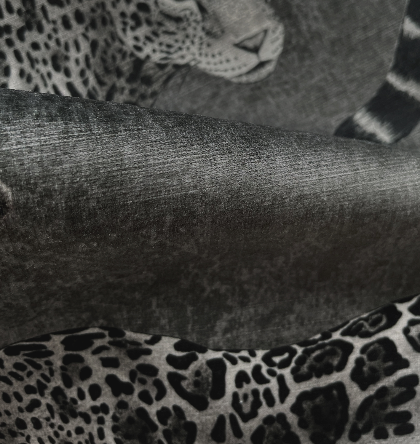 The Jaguars are hand-painted and each spot is totally unique just like the animal itself. The rich ebony tones add a dramatic feel while the subtle texture background evokes a sophisticated finish.
