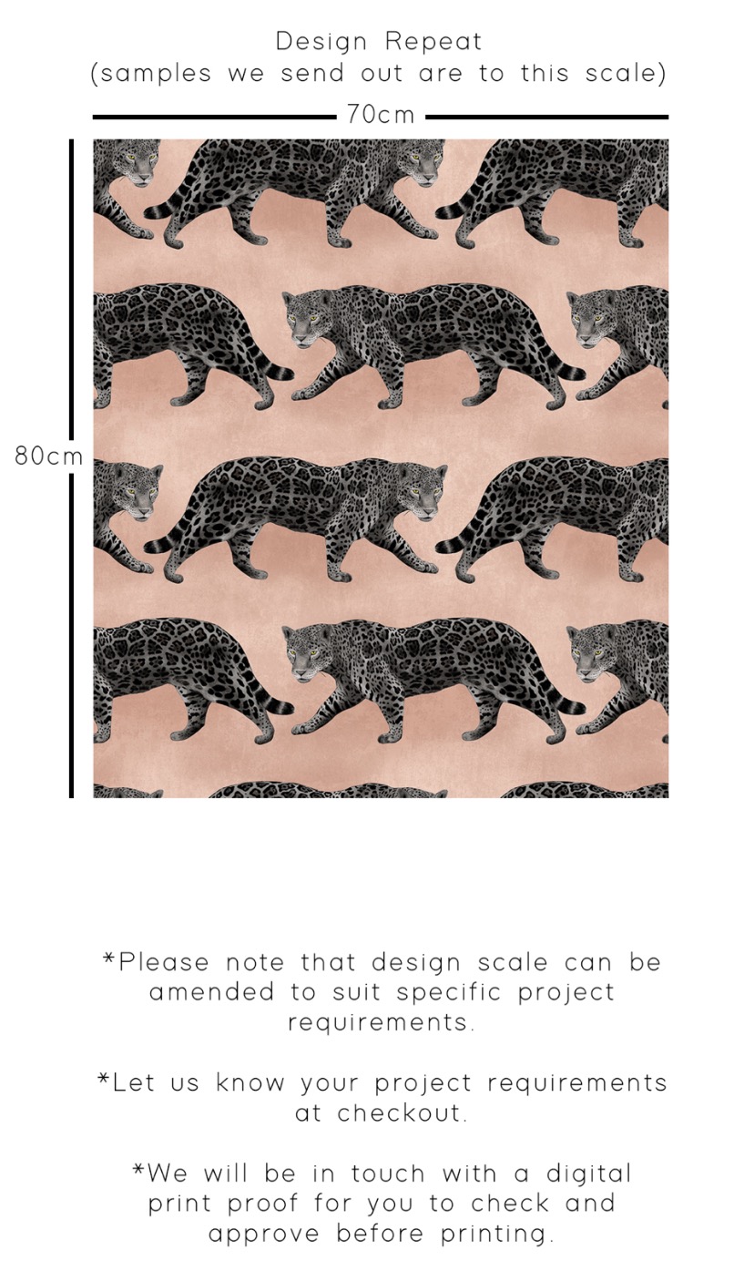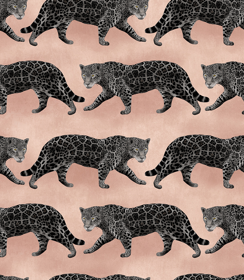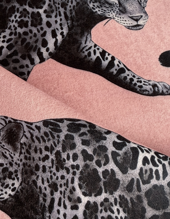The majestic black pantheress is hand-painted with each of her spots totally unique just like the animal itself. The blush pink tones add a feminine modern twist while the subtle texture background evokes a sophisticated finish.